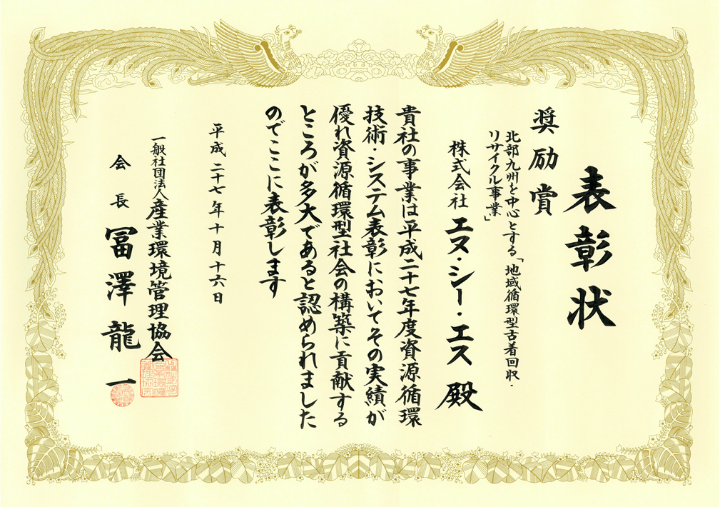 2015/10/16 平成27年度「資源循環技術・システム表彰」にて奨励賞を受賞